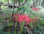 【写真】《左》9月9日、おぐらの森(ふじの森)で草刈り。《中》9月15日、とみだの森(ログハウス)の草刈り。《右》ログハウスの脇にある彼岸花がちょうど見ごろだった。